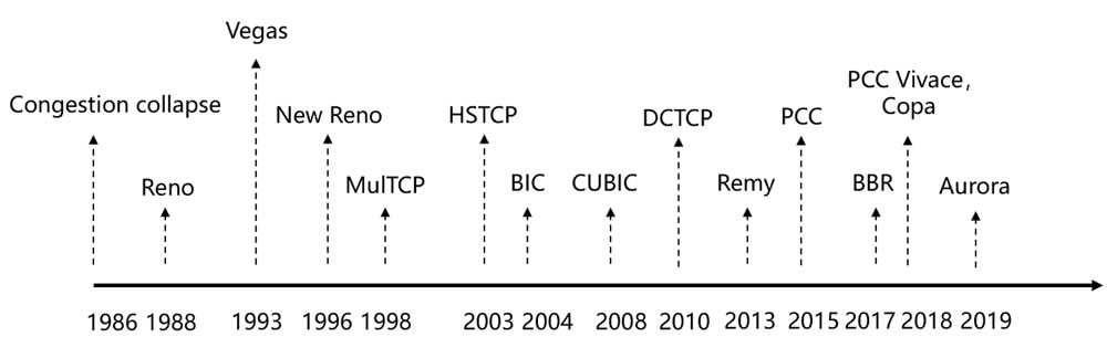 拥塞控制协议主要根据网络反馈信息如冗余ACK、ECN等推测网络拥塞程度,并从端到端的角度按照一定的规则调整传输速率,在缓解网络拥塞的同时尽可能保证各条流能够公平且有效的利用网络资源。多径TCP同样需要拥塞控制来分配每条子流的流量,从而最大化多径TCP的性能。基于TCP发展的里程碑,我们致力于探讨新一代拥塞控制协议的应用场景及相应场景下的协议设计空间,包括与机器学习机制、可编程设备和新型网络技术相结合等等。